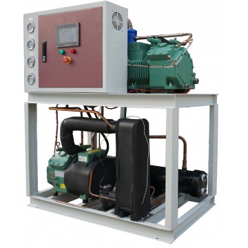 水冷式低溫冷凍機組采用外接冷卻水塔進行機器散熱,有效的提高了機器的散熱效率,機器的能效比更高。機組體積更小,大功率的低溫冷凍機組一般都采用水冷式。