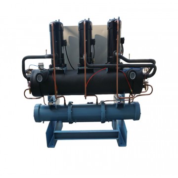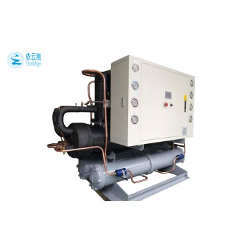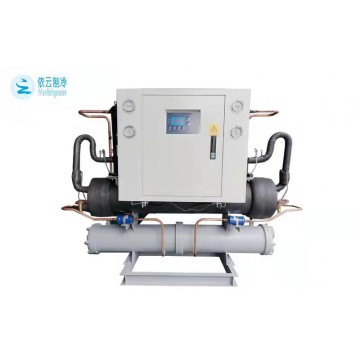 水冷箱式冷水機內置有水箱及水泵,因此安裝的時候,用戶只需要將冷水機組與冷卻水塔連接起來,接通自來水即可投入使用。